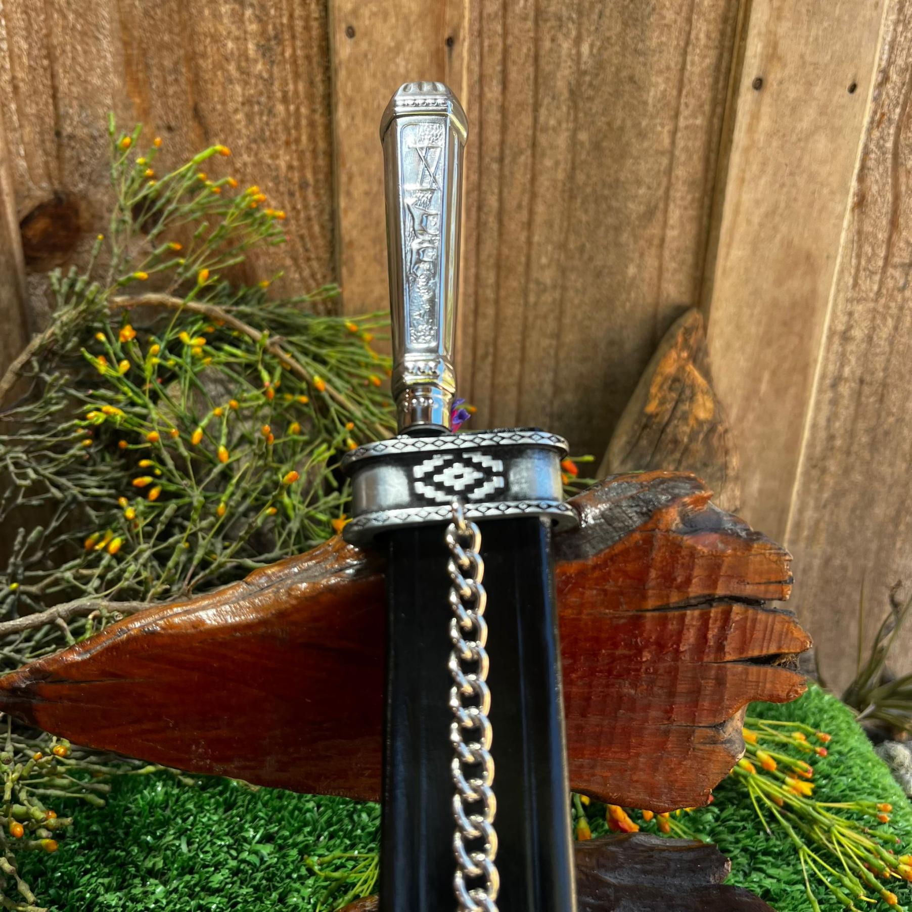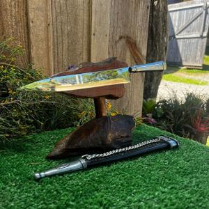 Acompanha bainha em couro com detalhes em inox